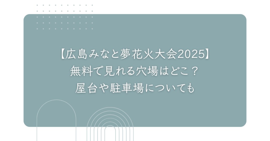 【広島みなと夢花火大会2025】無料で見れる穴場はどこ?屋台や駐車場についても